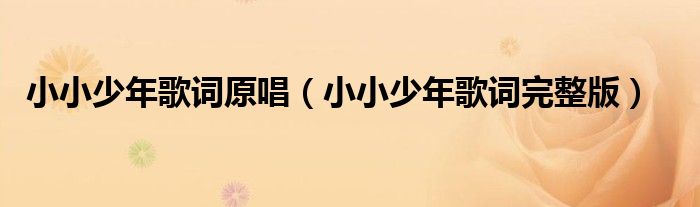 关于小小少年歌词原唱,小小少年歌词完整版这个很多人还不知道,今天菲菲来为大家解答以上的问题,现在让我们一起来看看吧!