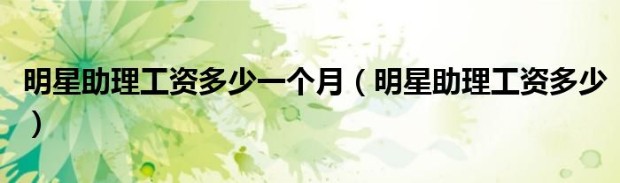关于明星助理工资多少一个月,明星助理工资多少这个很多人还不知道,今天菲菲来为大家解答以上的问题,现在让我们一起来看看吧!