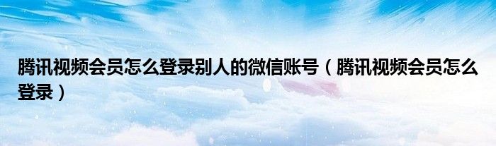 大家好,小晋来为大家解答以下问题,关于腾讯视频会员怎么登录别人的微信账号,腾讯视频会员怎么登录很多人还不知道,今天让我们一起来看看吧!