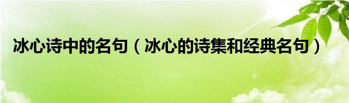 关于冰心诗中的名句,冰心的诗集和经典名句这个很多人还不知道,今天菲菲来为大家解答以上的问题,现在让我们一起来看看吧!