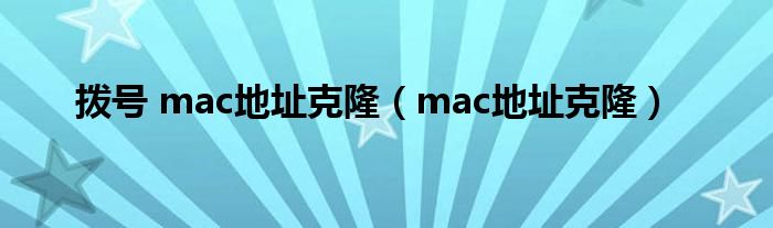 大家好,来宝来为大家解答以下问题,拨号 mac地址克隆,mac地址克隆很多人还不知道,今天让我们一起来看看吧!