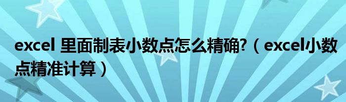 关于excel 里面制表小数点怎么精确?,excel小数点精准计算这个很多人还不知道,今天菲菲来为大家解答以上的问题,现在让我们一起来看看吧!