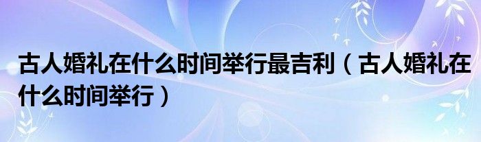 古人婚礼在什么时间举行最吉利(古人婚礼在什么时间举行)