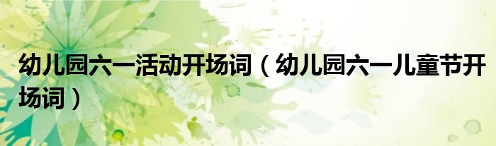 关于幼儿园六一活动开场词,幼儿园六一儿童节开场词这个很多人还不知道,今天菲菲来为大家解答以上的问题,现在让我们一起来看看吧!