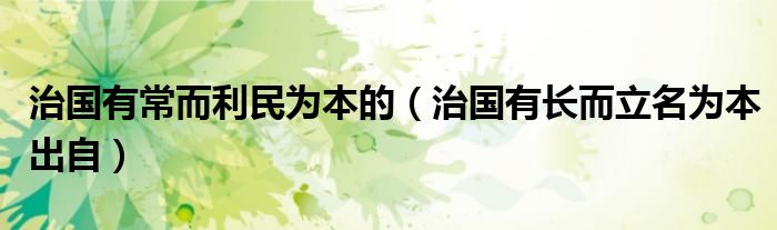 大家好,小晋来为大家解答以下问题,关于治国有常而利民为本的,治国有长而立名为本出自很多人还不知道,今天让我们一起来看看吧!