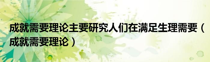 关于成就需要理论主要研究人们在满足生理需要,成就需要理论这个很多人还不知道,今天菲菲来为大家解答以上的问题,现在让我们一起来看看吧!