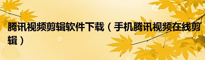 腾讯视频剪辑软件下载(手机腾讯视频在线剪辑)