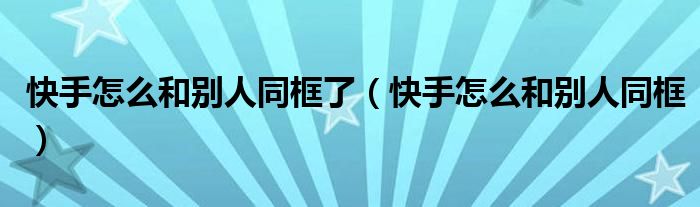 大家好,小晋来为大家解答以下问题,关于快手怎么和别人同框了,快手怎么和别人同框很多人还不知道,今天让我们一起来看看吧!
