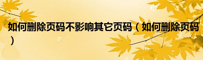 关于如何删除页码不影响其它页码,如何删除页码这个很多人还不知道,今天菲菲来为大家解答以上的问题,现在让我们一起来看看吧!