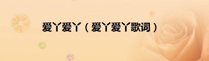 关于爱丫爱丫,爱丫爱丫歌词这个很多人还不知道,今天菲菲来为大家解答以上的问题,现在让我们一起来看看吧!