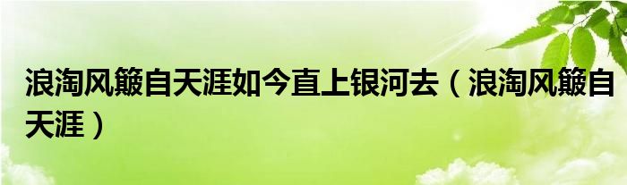 关于浪淘风簸自天涯如今直上银河去,浪淘风簸自天涯这个很多人还不知道,今天菲菲来为大家解答以上的问题,现在让我们一起来看看吧!
