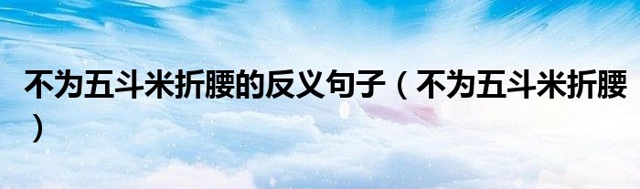 关于不为五斗米折腰的反义句子,不为五斗米折腰这个很多人还不知道,今天菲菲来为大家解答以上的问题,现在让我们一起来看看吧!