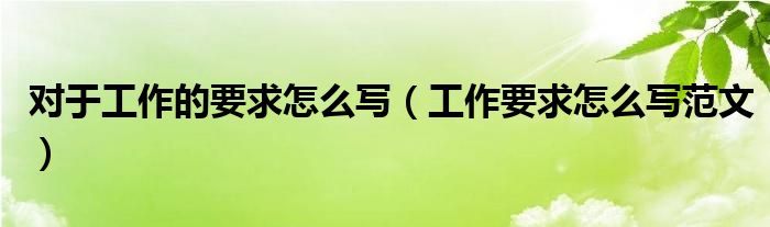 关于对于工作的要求怎么写,工作要求怎么写范文这个很多人还不知道,今天菲菲来为大家解答以上的问题,现在让我们一起来看看吧!
