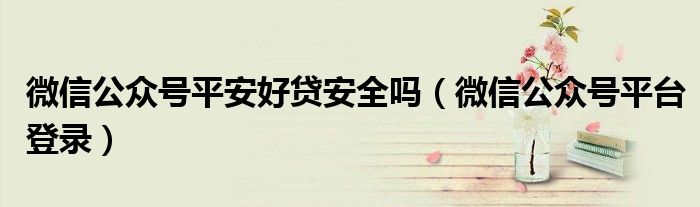 大家好,小飞来为大家解答以上问题,微信公众号平安好贷安全吗,微信公众号平台登录很多人还不知道,现在让我们一起来看看吧!